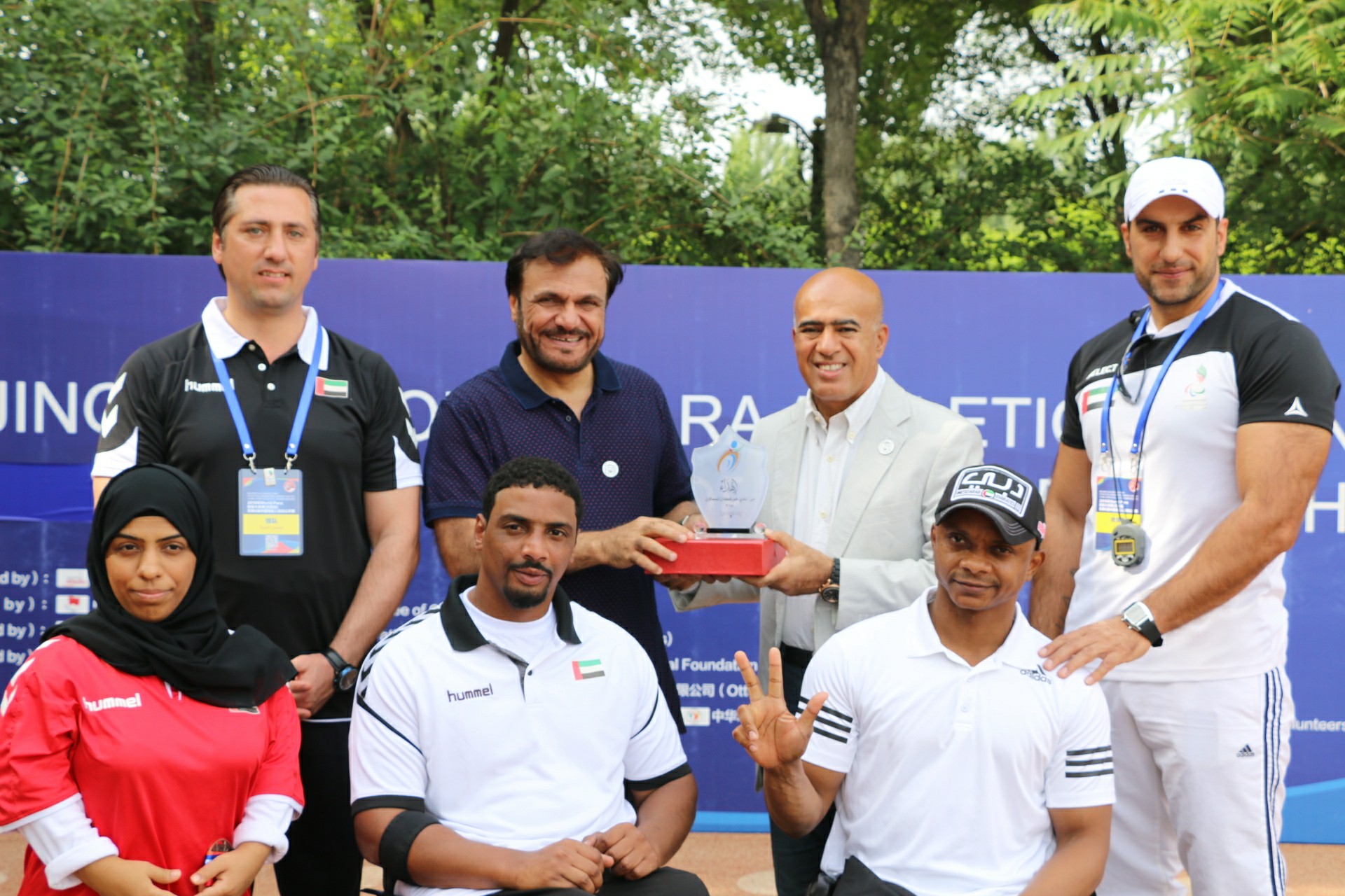 كما قدم الدكتور عبدالرزاق احمد بني رشيد رئيس نادي خورفكان للمعاقين شكره إلى صاحب السمو الشيخ مكتوم بن حمد الشرقي عن ما يبذله في خدمة الرياضة بصفة عامة ورياضة المعاقين بصفة خاصة كما أثنى على جهود الاجهزة الفنية واللاعبين التي اسفرت عن تحقيق انجازات دولية رائعة تضعهم بين أبطال العالم ومثلوا دولة الإمارات العربية المتحدة ضمن المنتخبات الوطنية خير تمثيل وكان كافة الأجهزة الإدارية والفنية واللاعبين على قدر المسؤولية وانعكست الصورة الحضارية للدولة والواجهة المشرفة لأبطال متحدي الإعاقة كما طالب الجميع بذل مزيد من الجهد والعطاء لمواصلة درب النجاح والمحافظة على المستوى الفني الرائع للاعبين وفي نهاية التكريم أخذت الصور التذكارية مع سمو الشيخ واللاعبين والمدربين لتبقي الصور التذكارية شاهدة على إنجازات أصحاب الهمم